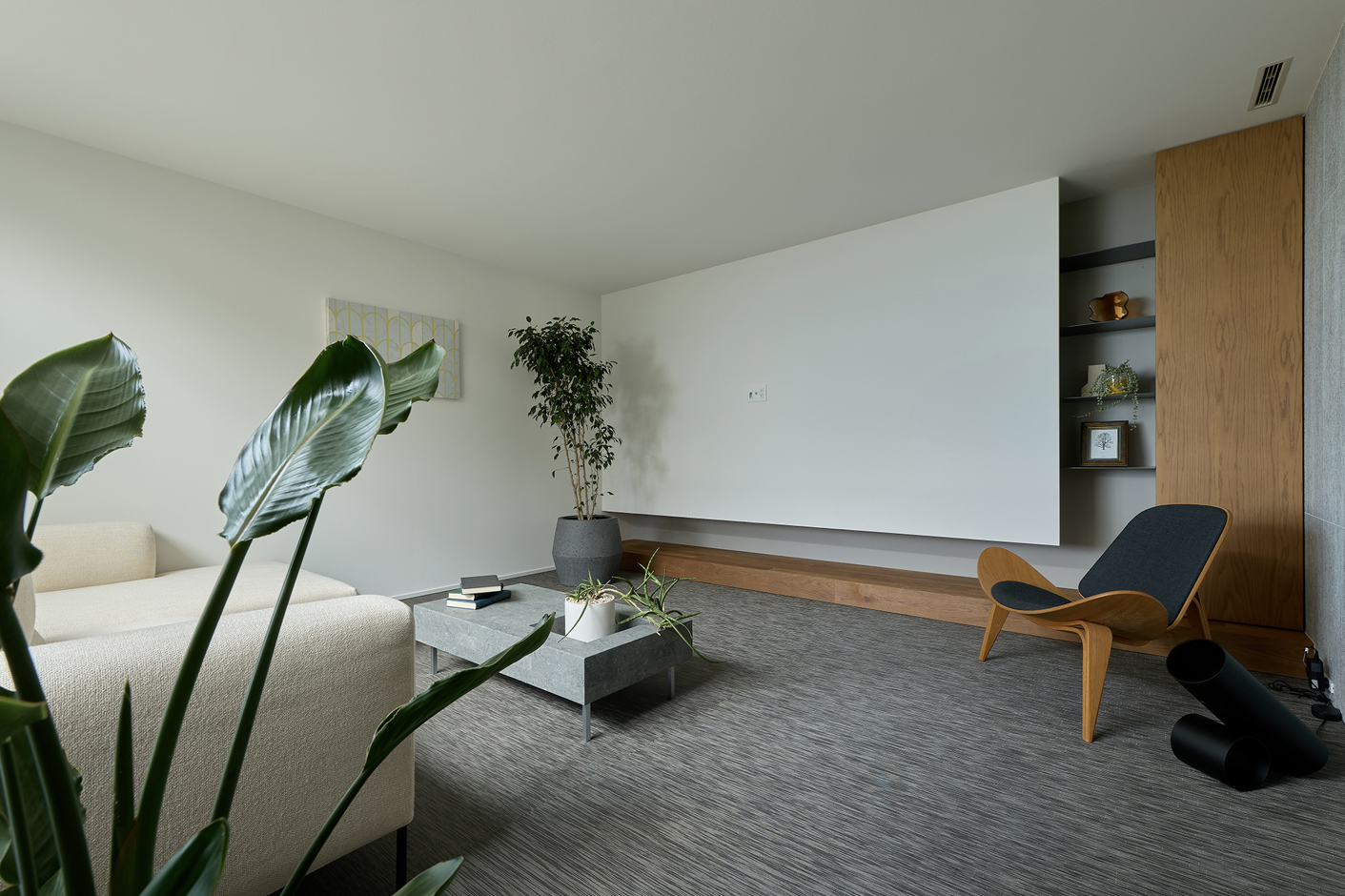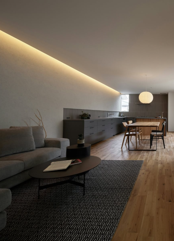 箱感のある空間に仕上がることで、置くインテリアもより映える「ダウンライトレス」なLDK。